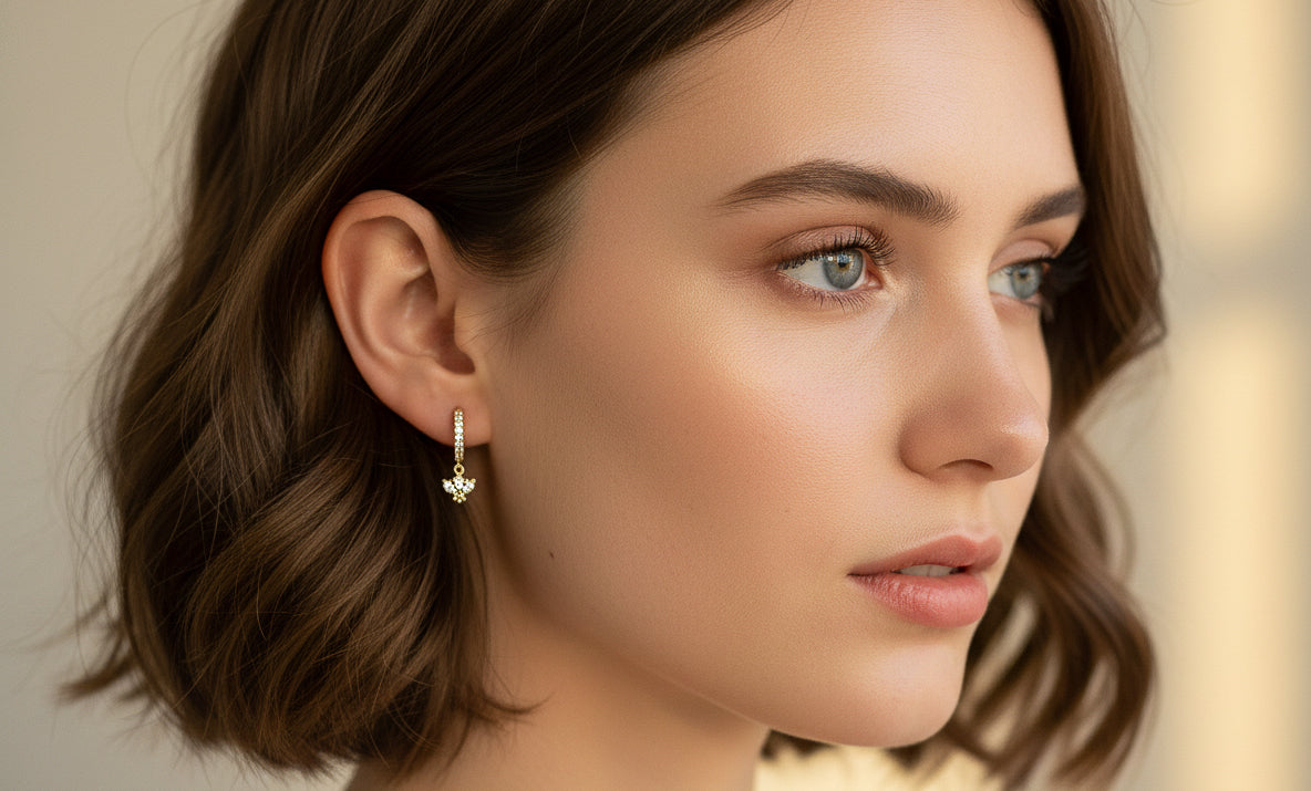 Mini créoles et Pampilles Stylisées en Zircon Naturel